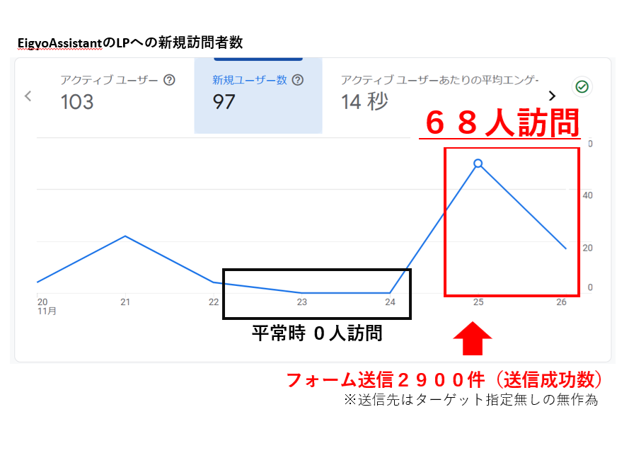 左図は平常時は全くPRを行っていない0アクセスの弊社本LPを、